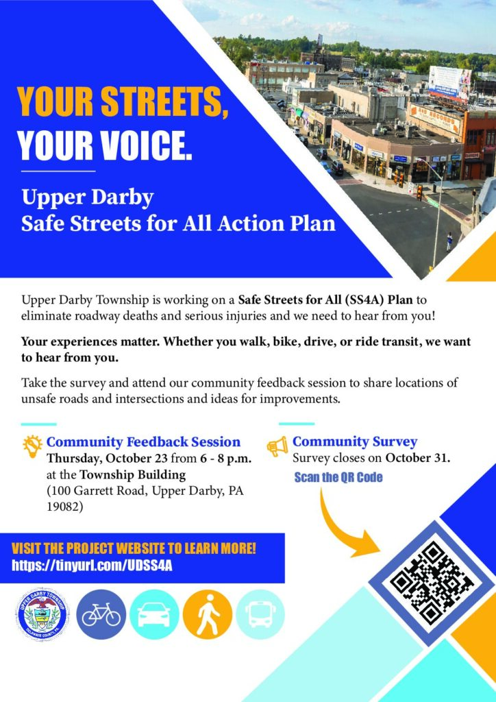Upper Darby Community & Economic Development is currently leading a “Safe Streets for All” study with the goal of making Upper Darby’s streets safer and more accessible for everyone, whether you walk, bike, drive, or ride transit.